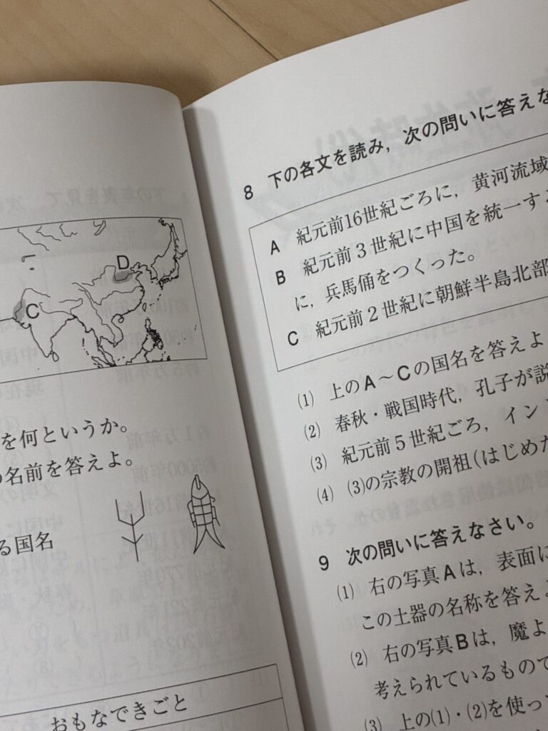 塾で習っていない社会は、定期テスト対策教材で勉強します。