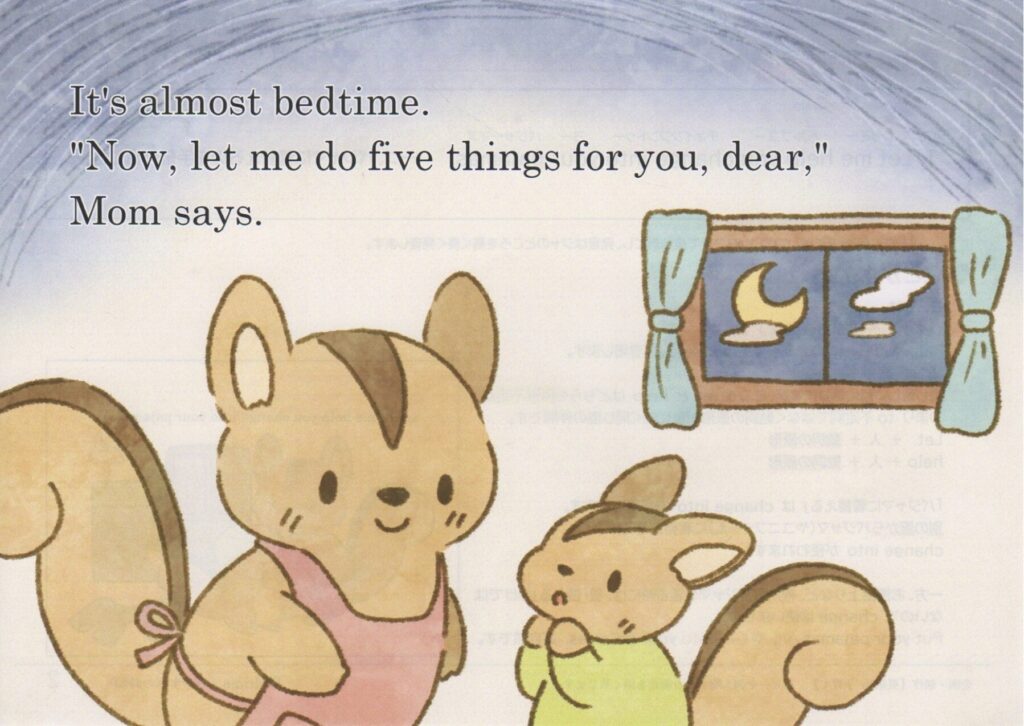かわいいリスさん親子のおやすみ前のストーリーです。